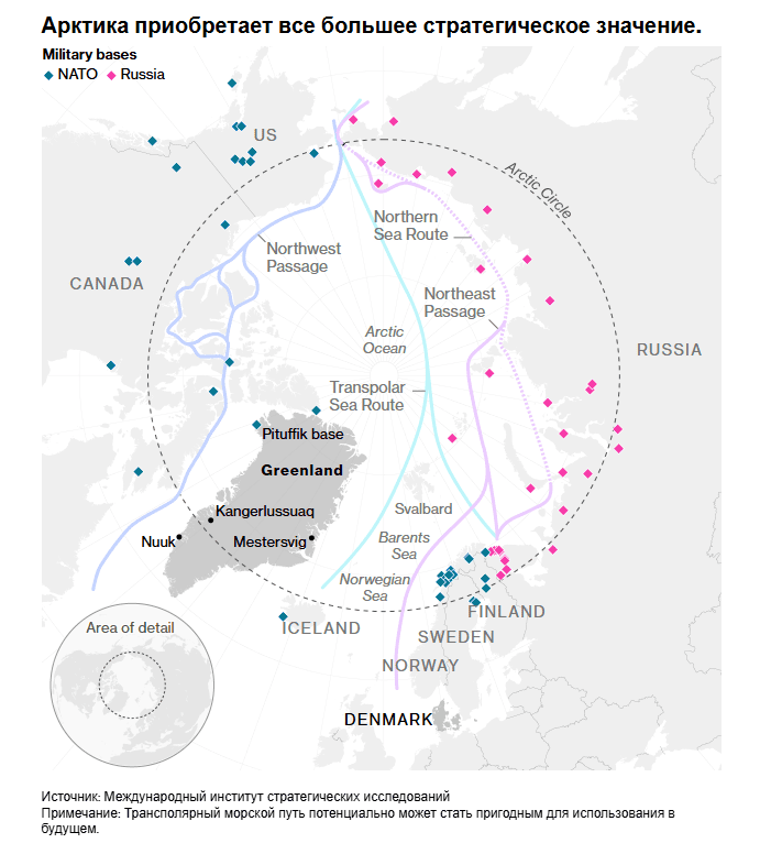 Наконец, значение Арктики. Ключевое географическое положение Гренландии трудно переоценить. По мере того как глобальное потепление приводит к таянию ледяных шапок, конкуренция за морские маршруты и природные ресурсы будет лишь усиливаться. Россия, обладая протяжённой береговой линией, доминирует на одной стороне Арктического океана. На другой стороне расположены семь арктических государств НАТО: США, Канада, Дания (через Гренландию), Исландия, Норвегия, а также два недавних члена альянса — Швеция и Финляндия. Китай строит внушительный флот ледоколов и, довольно странным образом, считает себя арктической державой. Полный суверенный контроль над Гренландией, безусловно, усилил бы позиции США в борьбе за Крайний Север.