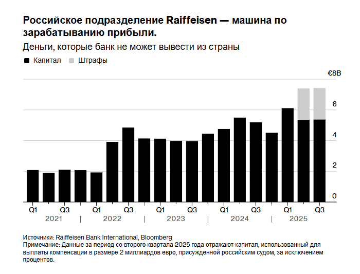 По мере того как война Владимира Путина на Украине затягивается, Raiffeisen Bank International AG до сих пор не решила проблему, которая мучает её последние четыре года: австрийский банк владеет крупнейшим иностранным банком в России и не может — или не хочет — уйти с этого рынка. В отличие от таких конкурентов, как Société Générale SA и HSBC Holdings Plc, которые покинули страну, Raiffeisen остался — и, по некоторым показателям, значительно выиграл от этого, накопив миллиарды долларов прибыли. Загвоздка в том, что вывести эти деньги из России невозможно, а продать бизнес не удалось даже по установленной Кремлём цене — в половину реальной стоимости подразделения. «Мы с самого начала работали над поиском покупателя», — говорит главный исполнительный директор Йоханн Штробль. «Но этого не произошло».