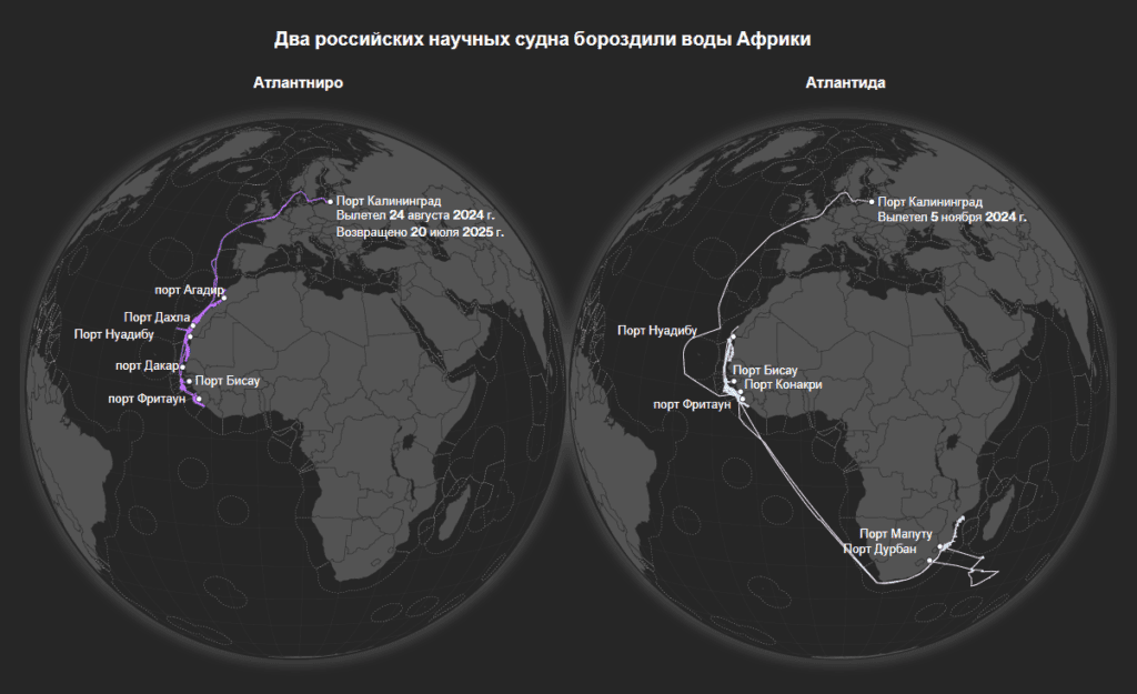 Экспедиция была официально заявлена как научная миссия, порученная лично Путиным: помочь африканским союзникам изучить запасы рыбы. Но кремлёвские чиновники не скрывают желания расширить морское присутствие России в условиях глобальной конкуренции мировых держав за влияние и за доступ к новым источникам ресурсов.