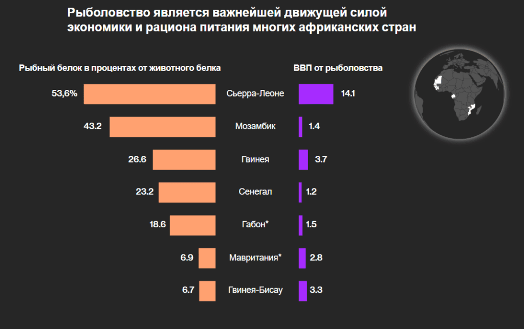 Рыболовство занимает значительную часть экономик многих африканских стран, и данные о запасах рыбы являются стратегически ценной информацией. Но у немногих правительств есть ресурсы для регулярных исследований. Между тем Западная Африка стала глобальным эпицентром незаконного рыболовства, теряя до $9,4 млрд ежегодно из-за нерегулируемого и неучтённого вылова, согласно оценкам Financial Transparency Coalition.