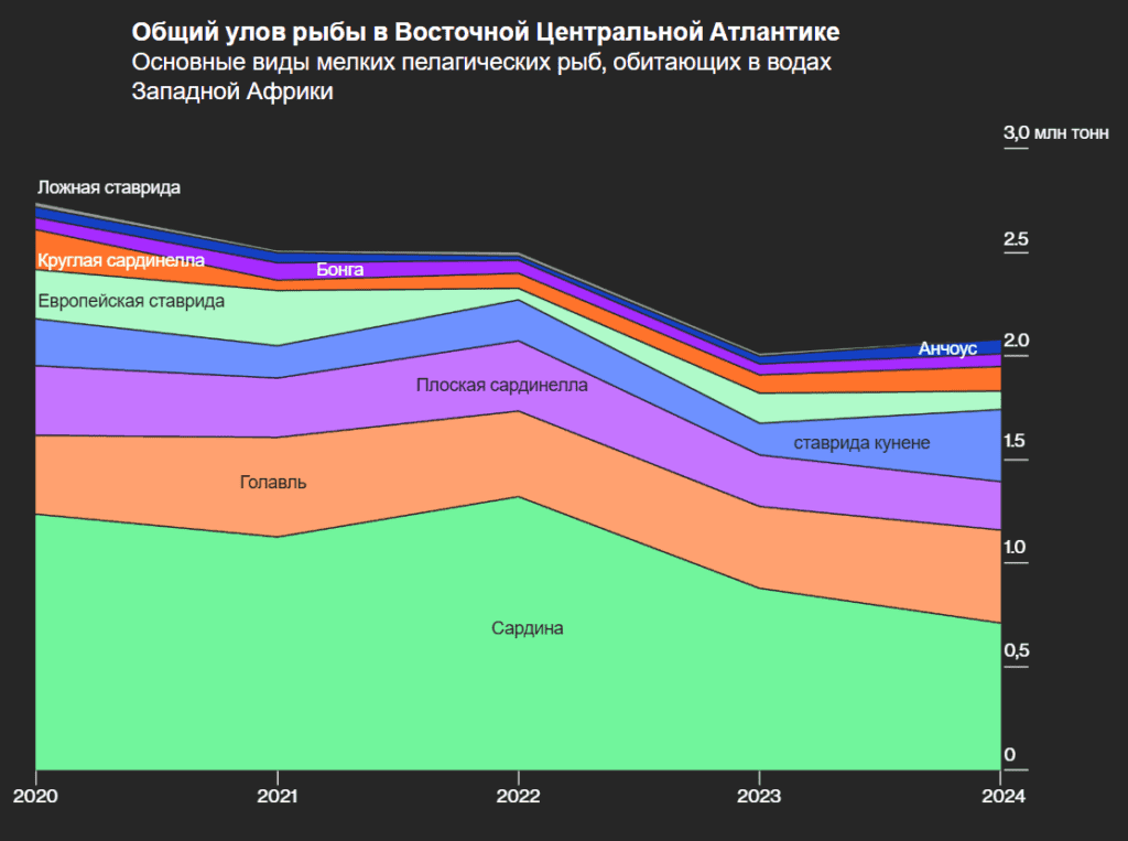 Кремль пользуется моментом, представляя Россию как надёжного партнёра для африканских прибрежных сообществ, которые заявляют, что суда ЕС, Китая и других международных игроков вытесняют местных рыбаков, истощают ресурсы и подрывают местную экономику.