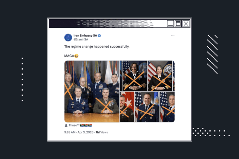 «Смена режима успешно произошла», — заявило посольство Ирана в Южной Африке, обыгрывая одну из причин, которыми Трамп обосновывал войну, и сопроводило пост изображениями с зачёркнутыми портретами нескольких военных чиновников, недавно уволенных министром обороны США Питом Хегсетом.