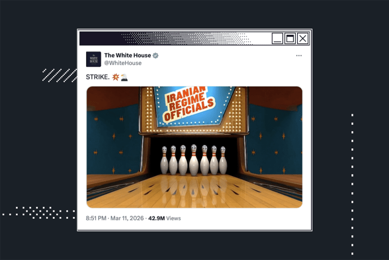Другие части администрации Трампа приняли схожую, легкомысленную стратегию в социальных сетях с использованием ИИ — задолго до войны с Ираном, но теперь распространив её и на неё. Одно видео, опубликованное в аккаунте Белого дома в X, соединяет сцены из голливудских боевиков с кадрами реальных авиаударов по Ирану; другое использует ИИ, чтобы изобразить иранский режим в виде кеглей для боулинга, которые сбивает американская армия.
